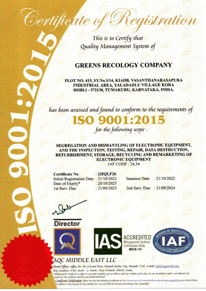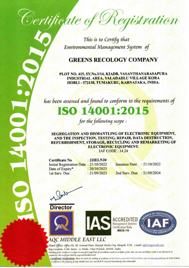 Greens Recology Company is a dedicated e-waste recycling, Metal Scrapping, Battery, Plastic Waste Management company focused on providing sustainable solutions for the disposal and recycling of electronic, Metal Scrapping, Battery, Plastic Waste. Founded in 2003, our mission is to minimize the environmental impact of waste, to create a cleaner, greener future by transforming waste into valuable resources. We specialize in the collection, processing, and recycling of various materials, including plastics, metals, paper, and electronic waste.